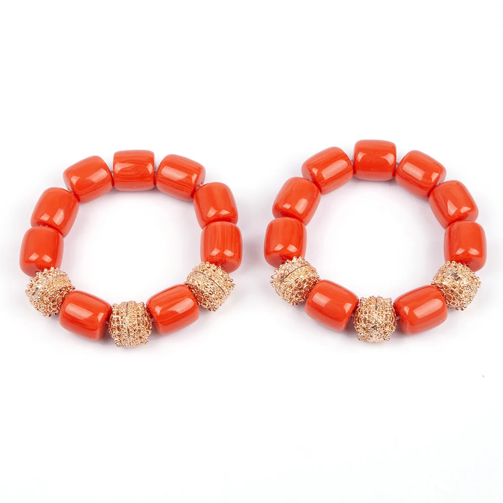 Buy Artificial Coral Women Pendant Necklace Bracelets Earrings Suit African Wedding Jewelry Set Nigeria Bride Accessories Party Gift