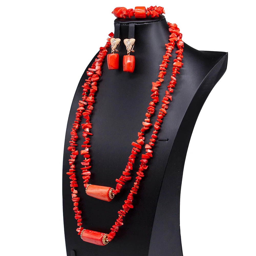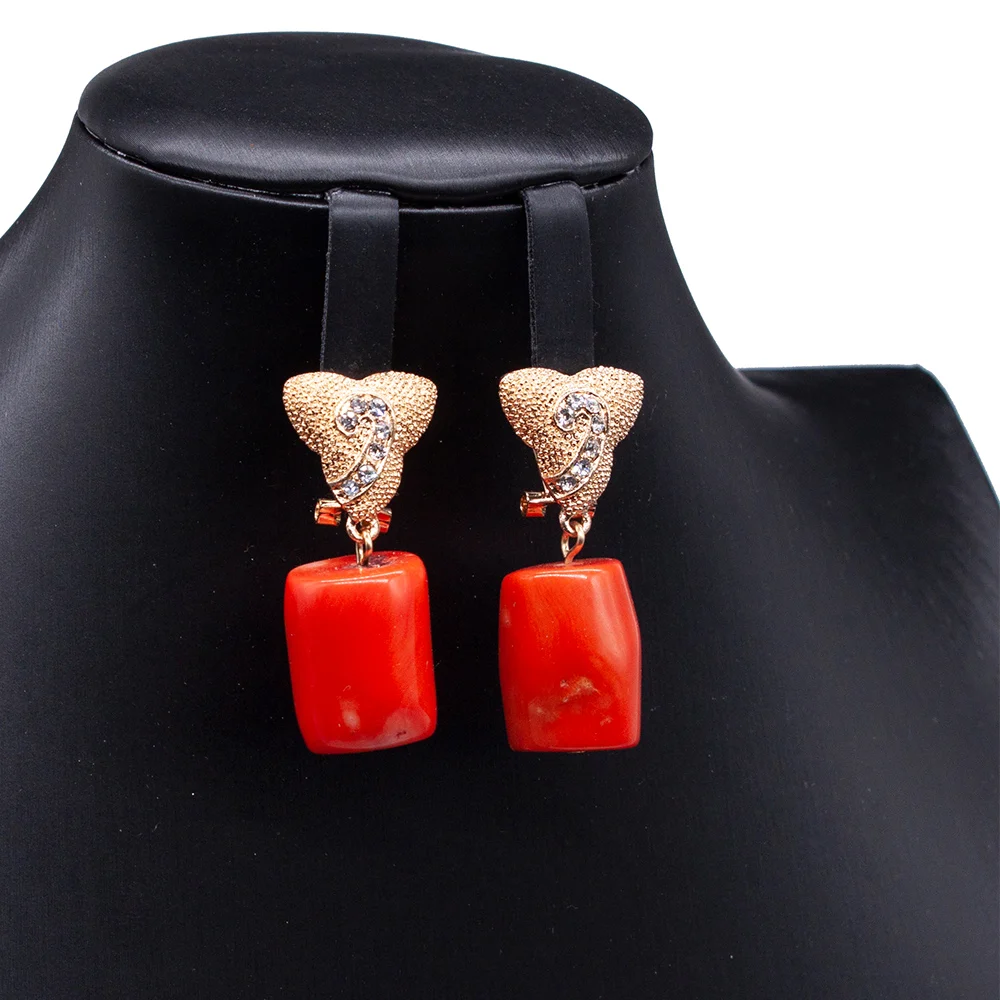 Natural Coral Jewelry Set African Costume Nigeria Coral Beads Necklace Jewelry Set Bridal Jewellery Set Orange ABG076