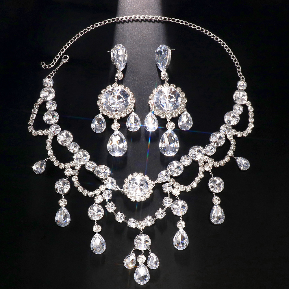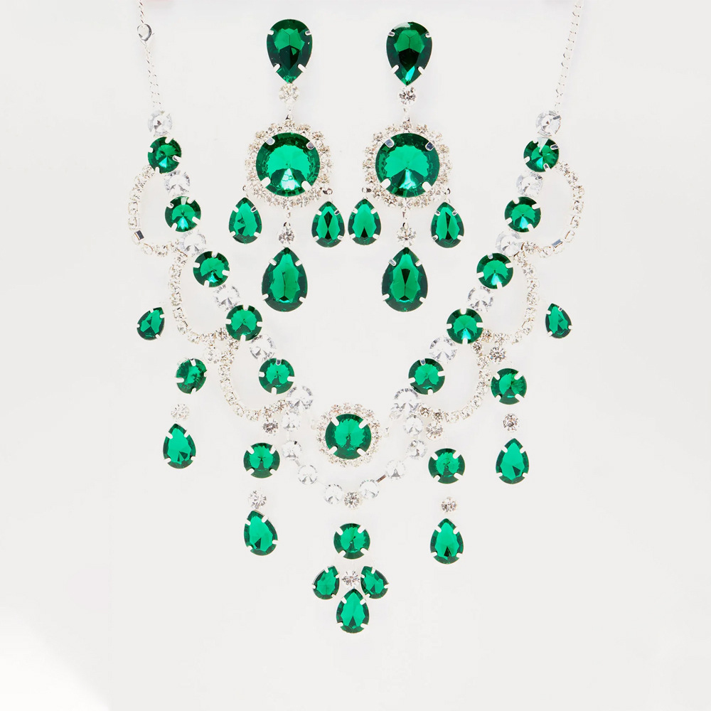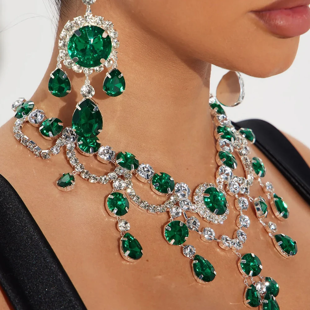 Buy Stonefans Fashion Green Round Jewelry Sets Wedding Accessories Exaggerated Rhinestone Bridal Necklace Earrings Set Women Gift